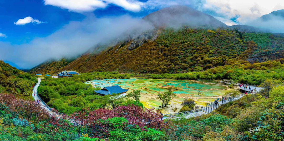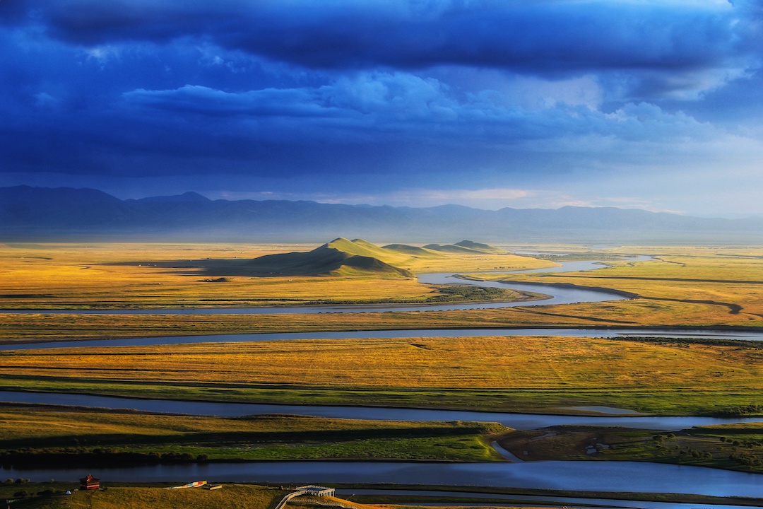 Le fleuve Jaune, à partir des fins ruisseaux des montagnes Bayankala du plateau Qinghai-Tibet convergeant en un déferlement puissant, via le Gansu se déverse dans le Sichuan où sous l’influence d’un relief singulier il évolue en méandres sinueux conférant aux cinq districts Ruoergai, Aba de la préfecture Aba, Songpan, Hongyuan et Shiqu un magnifique paysage naturel.