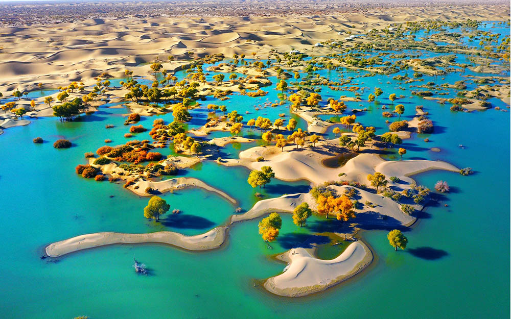 En 2024, le « Désert de Badain Jaran – Tours de sable et lacs » est inscrit sur la Liste du patrimoine mondial à la 46e session du Comité du patrimoine mondial de l’UNESCO. Le désert de Badain Jaran, aux coloris chatoyants, abrite la mégadune stabilisée la plus haute du monde, la plus grande concentration de lacs interdunaires, et la plus vaste étendue de sables « chantants » – désigné plus beau désert de Chine par le National Geographic chinois.