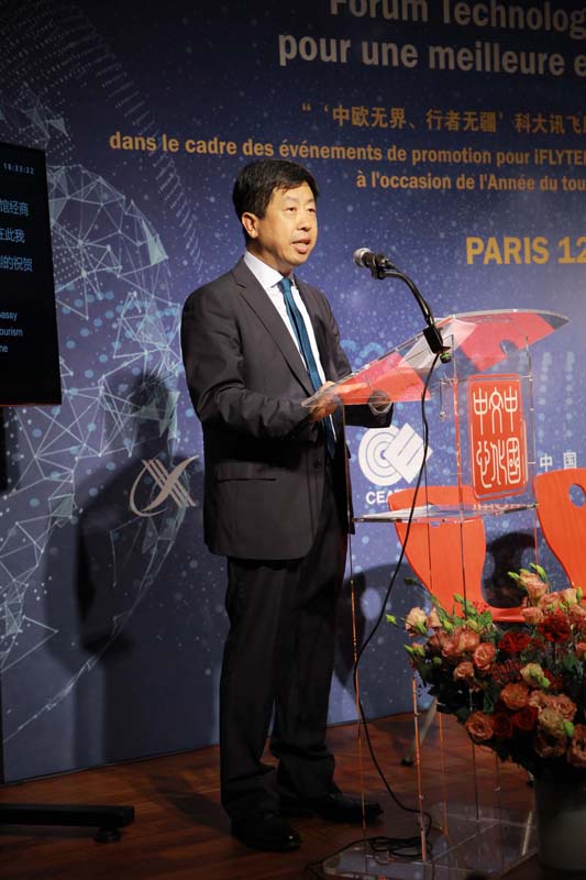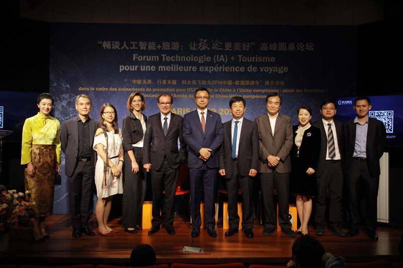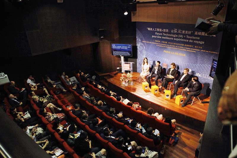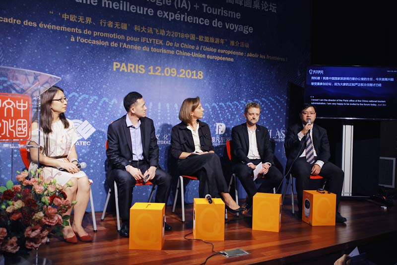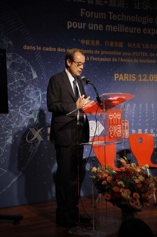 2018年9月12日晚,“畅谈人工智能+旅游:让旅途更美好”高峰圆桌论坛在巴黎中国文化中心举行。本次圆桌论坛由巴黎中国文化中心特别支持,中欧协会欧盟工作委员会主办,拉开了“中欧无界、行者无疆”科大讯飞助力2018中国-欧盟旅游年系列活动亮相欧洲的帷幕。巴黎中国文化中心主任严振全,中国驻法国大使馆代表王宏前,中国驻巴黎旅游办事处主任沐昱玮,中国欧洲经济技术合作协会副理事长、欧盟工作委员会会长潘锋,科大讯飞集团市场部总经理任萍萍,科大讯飞翻译业务总经理翟吉博等中方嘉宾及法国旅游发展署署长克里斯蒂安•曼戴(Christian Mantei),联合国副秘书长、前法国卫生部长、文化部长和外交部长菲利普•杜斯特-布拉齐(Philippe Douste-Blazy),法国旅游发展署副署长韦鲁斯卡•贝卡尔(Veruschka Becquart),法国Pierre & Vacances集团高级副总裁格雷戈里•西翁(Gregory Sion)等一百七十余位中法文化、旅游及科技界人士、媒体记者出席了活动。