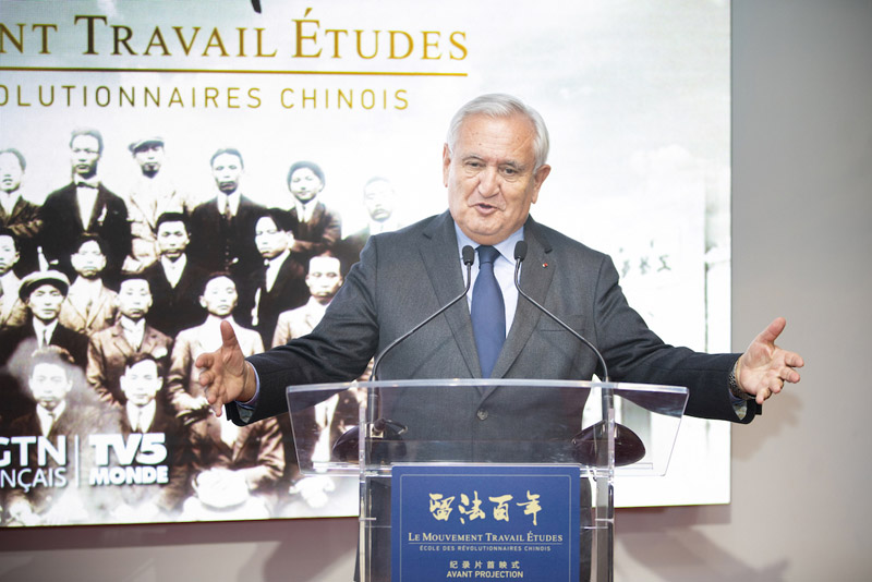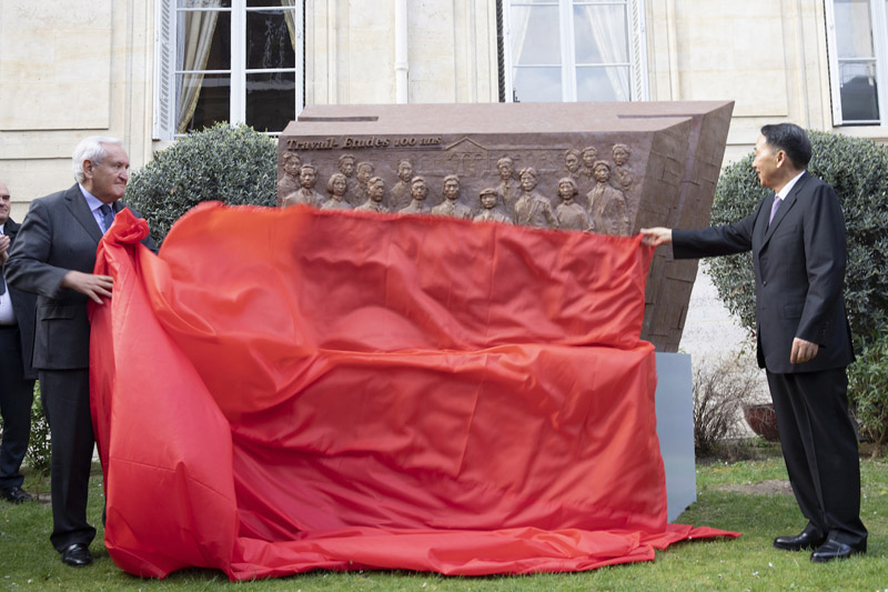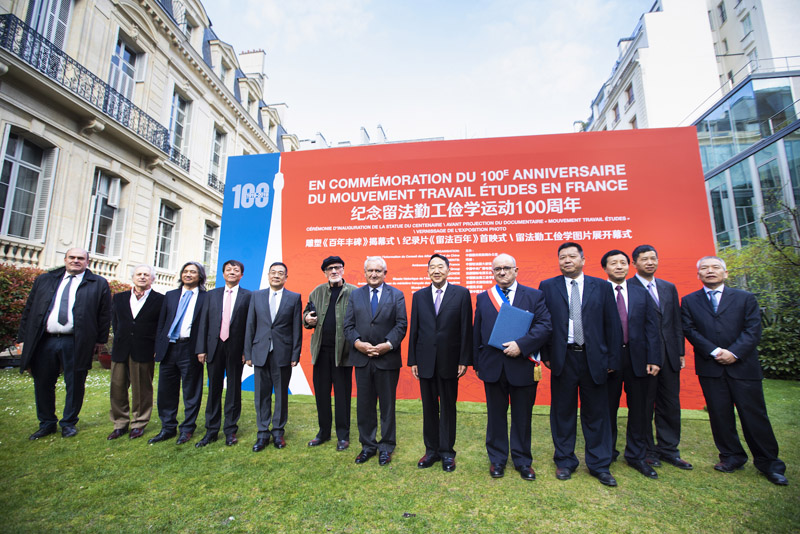 3月23日下午,在习近平主席对法国进行国事访问前夕,为纪念中国留法勤工俭学运动100周年,中国国务院新闻办公室会同中央广播电视总台、中国美术馆,在巴黎中国文化中心隆重举办《百年丰碑》雕塑揭幕式、《留法百年》纪录片首映式、勤工俭学图片展开幕式,以可视可感的形式,再现了周恩来、邓小平、蔡和森、陈毅、聂荣臻等老一辈革命家在法负笈求学的难忘岁月。中共中央宣传部副部长蒋建国、法国前总理拉法兰、中国驻法使馆文化处公使衔参赞李少平、法国国际电视五台(TV5MONDE)台长伊夫•毕戈等100余人出席了当天的活动,首映仪式由中央广播电视总台中国国际广播电台副总编辑任谦主持。